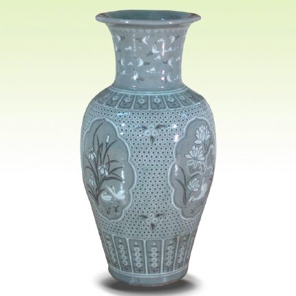 특히 1995년 광주비엔날레 초청 전시작 ‘연꽃장식상감청자(31x 68cm)’는 1900년대에
