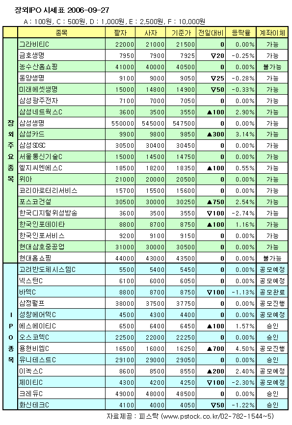 [프라임경제] 27일 장외대형주의 주가는 업종별로 등락이 엇갈렸다.