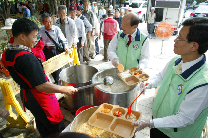 서울 종묘공원에서 실시한 한가위 사랑 나눔 행사에는 노준형 정보통신부장관, 황중연 우정사업본부장과 직원들이 자원봉사자로 참여하여 노인과 노숙자 500여 명에게 점심과 떡을 대접했다.