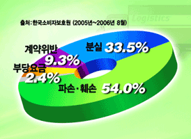한국소비자보호원의 택배 피해유형 분석에서도 파손, 훼손 및 분실피해가