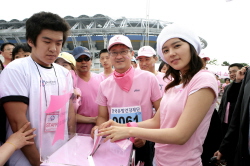 이번 마라톤대회는 지난 4월 부산을 시작으로 광주(5월), 대전(6월), 대구(9월), 서울(10월)에서 릴레이식으로 진행되고 있으며 참가비 전액인 약 3억원이 한국유방건강재단에 기금으로 전달될 예정이다(www.pinkmarathon.com).
