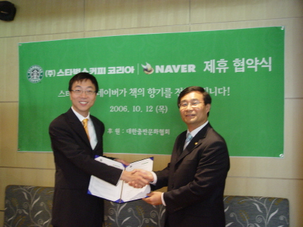 [프라임경제]NHN㈜(대표 최휘영)의 NO.1 검색 포털 사이트 네이버(www.naver.com)는 책 읽는 문화 확산을 위해 (주)스타벅스커피 코리아(대표 장성규, www.istarbucks.co.kr)와 업무 제휴를 맺고 ‘책 읽는 스타벅스’ 캠페인을 강화한다고 12일 밝혔다.