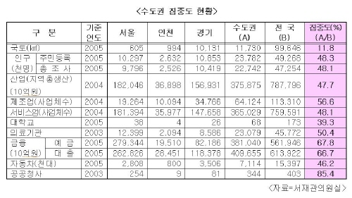 여기다 수도권에 제조업체의 56.6%, 서비스업 48.1%, 금융예금 및 대출업 67~68%, 공공청사 85.4%가 집중되어 있는 실정이어서 대수도론이 수도권 과밀화를 더욱 심화시킬 것임은 자명하다는 것.