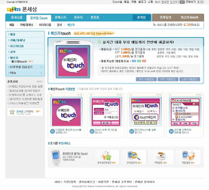 ‘다음 모바일 터치’는 특정 이동통신 가입자끼리만 이용 가능한 기존 모바일 메신저와 달리SKT, KTF, LGT 3개사와 제휴를 체결하고, 타 이동통신 가입자끼리도 간편하게 메신저 서비스를 이용할 수 있도록 한 점이 특징이다. 또한 월 정액제를 통해 저렴한 비용으로 무제한 실시간 대화를 나눌 수 있다.