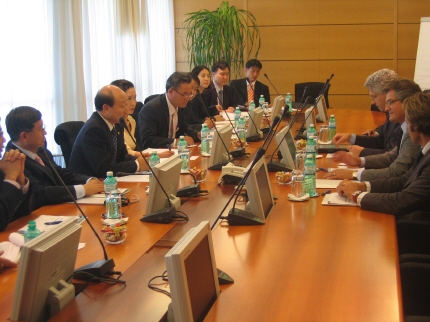 노장관은 16일(현지시간) 이탈리아 꼬라도 깔라브로(Corrado Calabro) 통신규제위원장을 만나 양국 IT 시장 현황 및 규제정책 방향을 논의하였다. 면담을 통해 이탈리아의 방송․통신 융합 규제기구 설립 경험 및 현 운영 방향과 UMTS, IP-TV 등 신규 IT서비스 관련 시장 현황 및 정책 비전을 공유하는 기회를 가졌다. 특히 1997년 일원화된 규제기관(Agcom)을 설립함으로써 방송․통신 융합에 대해 선도적으로 대응하고 있는 것으로 평가되어 있는 이탈리아와 규제 기관 설립 및 운영에 이르는 전반적인 논의를 하였다.