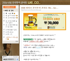 친구와 연인, 그리고 가족과 함께했던 술과의 추억들이 담긴 사진을 가수 바이브 싸이월드 타운 홈피(town.cyworld.com/vibewego) 이벤트 페이지에 업로드하면 조회수와 댓글 반응, 자체 심사 점수가 가장 높은 사진들을 오는 25일까지 추첨을 통해 진행된다.