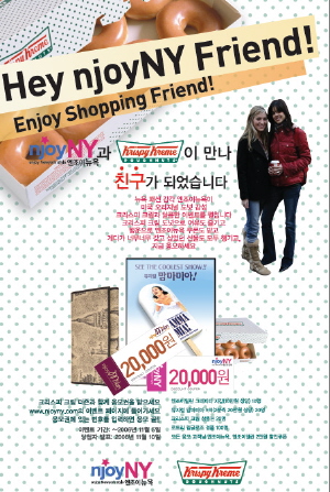 전국의 크리스피 크림 매장에서 "더즌"을 구입하는 고객에게는 엔조이뉴욕의 푸짐한 선물이 걸려있는 쿠폰을 지급한다.