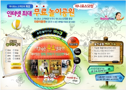 이를 위해 먼저 하나포스닷컴은 기존의 ‘24가지 특별한 서비스’ 페이지를 ‘즐거움’을 주제로 한 놀이공원으로 전면 개편, 하나포스 고객들이 컨텐츠 특성별로 구분된 놀이공간을 통해 자신에게 맞는 맞춤형 서비스를 손쉽게 찾아 들어갈 수 있도록 했다.