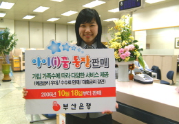 [프라임경제] 부산은행은 출산장려 정책에 적극 호응하고 신규가입 자녀와 가족에게 다양한 서비스를 제공하는 아이(i)꿈 통장을 2006년 10월 18일부터 판매한다고 밝혔다.