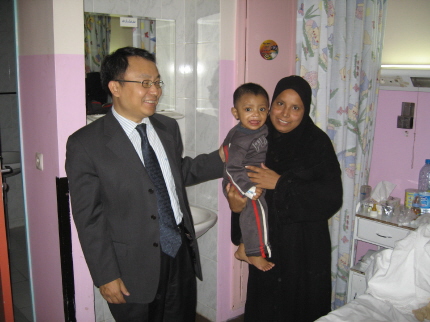 이태영 LG전자 암만지사장이 언청이 무료수술을 받은 토힌(24개월) 어린이와 어머니 나시마 씨와 함께 기념촬영을 하고