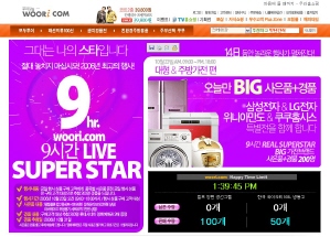 우리닷컴 9시간 라이브 수퍼스타’ 란 백화점 기획할인 매장 개념을 온라인 쇼핑몰에 도입한 이벤트로, 고객반응이 높은 브랜드 중점으로 매일 9시간 동안 새로운 이벤트 혜택(경품,적립금10%,비세일 20%,쿠폰 최대 15% 등)을 제공한다.
