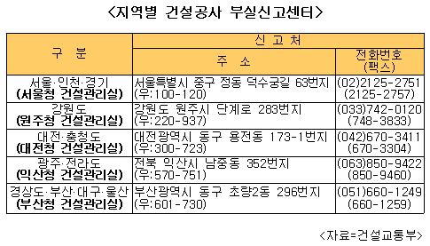 건교부 관계자는 “앞으로도 부실신고센타의 내실 있는 운영과 적극적인 홍보를 통해 건설공사의 견실시공 유도와 신뢰성 확보에 노력해 나갈 것”이라고 밝혔다.