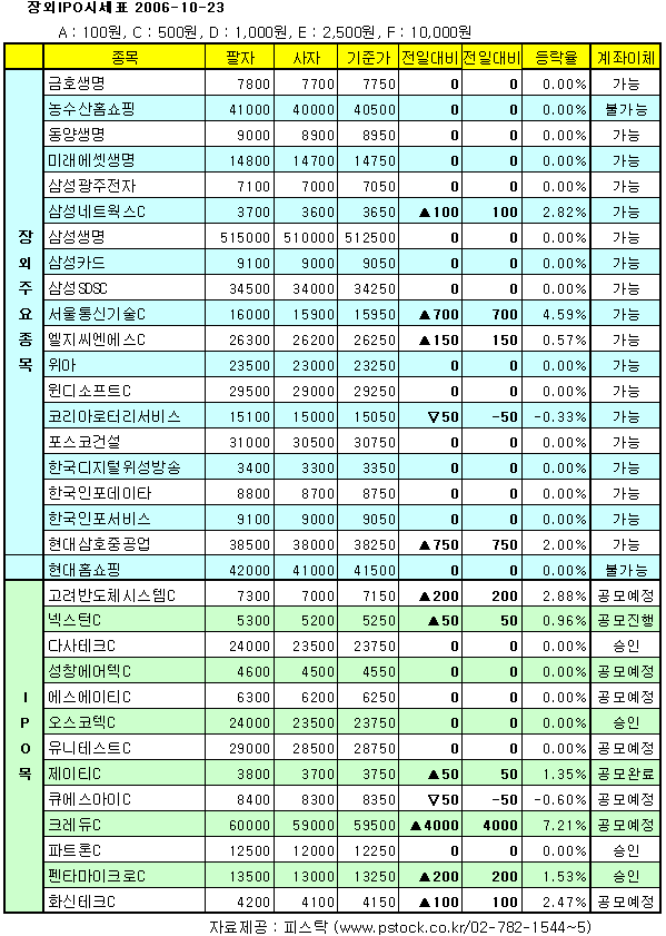5250원을 기록하였으며, 청약일정이 겹친 고려반도체시스템과 인천도시가스는 각 각 7150원(+2.88%), 2만8750원(-1.71%)으로