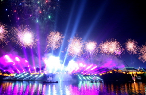 동시에 불꽃쇼가 진주성을 둘러싸고 남강을 내려다보고 있는 밤하늘을 화려하게 수놓았다.