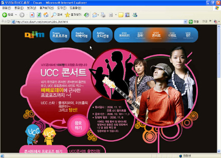 1,000명의 회원을 ‘UCC콘서트’에 관람객으로 초대할 계획이다. 다음 內 ‘UCC콘서트 페이지를 통해 응모하기 버튼을 클릭하면 된다.