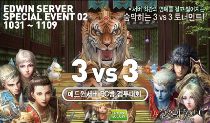 ‘로한’ 가맹 PC방에서만 신청 가능한 이번 <에드윈 서버 PC방 검투 대회>는 각기 다른 종족 3인으로 구성된 최강 팀을 가리는 토너먼트 대회로써 각 대전마다 3판 2선승제를 실시, 생존자가 많은 팀이 최종 우승하게 된다.