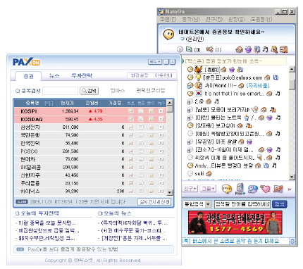 기존에도 메신저를 통해 증권정보를 전하는 사례는 있었지만, 탭방식으로 메신저 창 안에서만 구현이 가능해, 메신저 기능과 동시 사용이 불가능하다는 점이 다소 불편했다. 하지만 네이트온 ‘팍스온’ 서비스는 메신저 창과 별도로 이용이 가능해 메신저로 업무용 대화를 하면서도 간간히 주식정보를 확인하기가 용이하다.