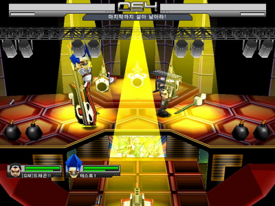 게임 시작 시 소규모의 공연을 할 수 있는 무대를 배경으로 무대 양측에 위치한 방과 가운데 무대를 오가며 전투를 할 수 있는 단순한 구조이지만, 무대 위 드럼을 파괴하면 화려한 조명과 함께 역동적인 전투가 가능한 무대로 바뀌게 된다.