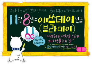 바로 브라데이. 11월 8일이 브라 모양을 하고 있는 것에 착안, 속옷업계에서는 브라데이를 만들어 뜻 깊은 의미 전파에 나섰다. 이날은 남자들이 사랑하는 여자에게 속옷을 선물하는 날인 것.