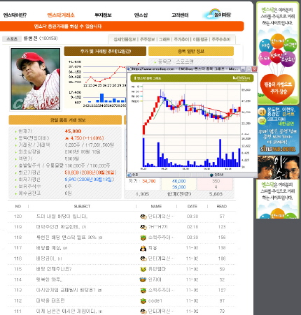 현재 엔스닥 종합순위에서 1위 박지성, 2위 이승엽에 이어 3위를 달리고 있는 류현진株는 한달여 앞둔 제 15회 도하 아시안 게임의 활약에 기대감으로 아직 추가 상승 할 여력이 충분히 있는 만큼, 상대적으로 아시안 게임에 출전하지 않는 이승엽株 주가(56,000원)를 추월 할 수 있을지도 관심 거리이다.