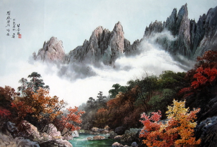 2006년 10월 베이징국제미술전람회 금상 수상자 김승희화백의 집선봉의 가을(94*64cm)