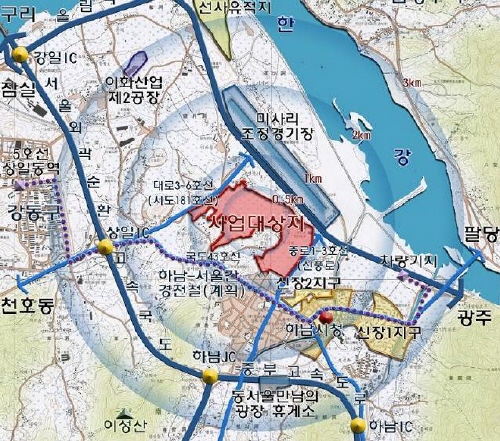 인근에 한강·검단산·미사리 조정경기장 공원 등이 연접 하고, 강남과도 가까워 쾌적한 주거환경 및 입지 장점을 갖고 있다.