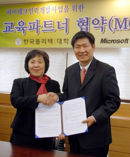 한국MS(www.microsoft.com/korea, 대표 유재성)는 한국폴리텍1대학(학장 이상덕)과 대졸 미취업자의 성공적인 취업 지원 및 구조적인 전문 소프트웨어 개발자 수요 공급 불균형 문제를 해결할 수 있는 기업, 정부 및 대학간 상호협력체계를 만드는 것을 목적으로 양해각서 (MOU)를 체결했다고 8일 밝혔다.