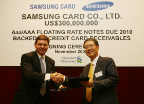 [프라임경제] 삼성카드는 세계적 투자은행인 영국의 SCB와 3억 달러에 달하는 해외 유동화증권(ABS) 발행 계약을 홍콩에서 체결했다고 8일 밝혔다.