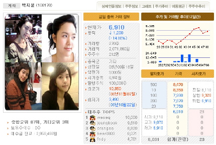 이런 팬들의 반응 때문인지, 스타의 인기도가 주가로 나타나는 사이버 스타증권 엔스닥(