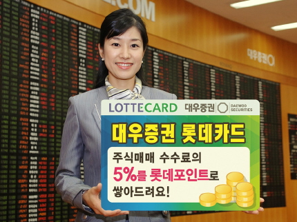 [프라임경제]롯데카드(대표이사 이병구)는 대우증권(주)과 업무제휴를 맺고 주식거래 수수료의 일부를 포인트로 적립해주는 ‘대우증권 롯데카드’를 14일 출시한다고 밝혔다