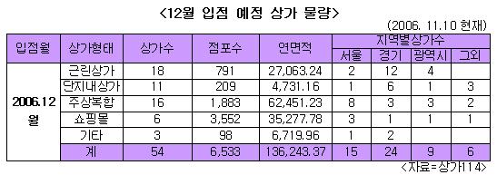 [프라임경제] 다음달에 전국에서 새로 입점하는 상가는 총 54곳 6533개 점포에, 연면적
