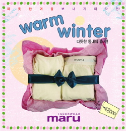 마루이너웨어는 블랙과 베이지 컬러의 남성용 상하의 동내의와 아이보리, 베이지, 핑크의 여성용 상하의 동내의를 선보이고 있다.