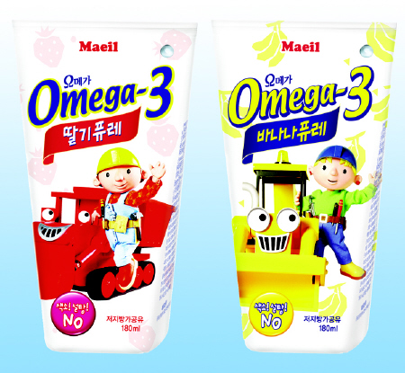 또한, ‘오메가3&과일퓨레’ 제품 패키지에는 현재 EBS에서 인기리에 방영중인 ‘뚝딱뚝딱 밥 아저씨’ 영국 캐릭터 ‘밥 더 빌더’를 적용해 우유를 잘 안 먹는 아이들에게 맛과 재미로 큰 인기를 모을 것으로 기대되고 있다.