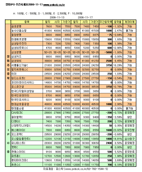 한편 장외 주요 종목들의 3분기 실적 발표가 있었던 금주는 장외 대형주를 중심으로 상승세를 보였다.