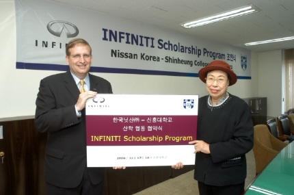 한국닛산은 타 회사와는 달리, 보다 효율적인 산학 프로그램을 위해 실습용 차량 'Infiniti M45' 1대 뿐만 아니라, 인피니티만의 차량 A/S 및 고객 서비스 등을 접할 수 있는 '인피니티 전용 진단기 컨설트II', '인피니티 서비스 매뉴얼' 등을 신흥대학교 자동차 학과에 제공했다.