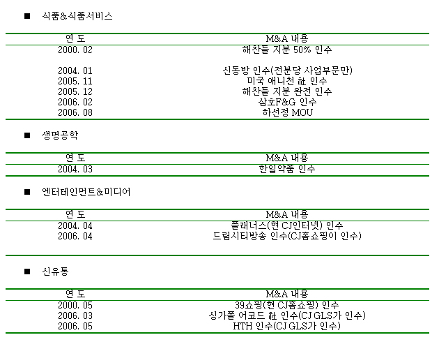 또한 2005년 말에는 미국 내추럴푸드 업체인 애니천 社를 인수, 올해 전년대비 매출이 40% 이상 증가하는 등 안정적인 성장세를 보이고 있다.