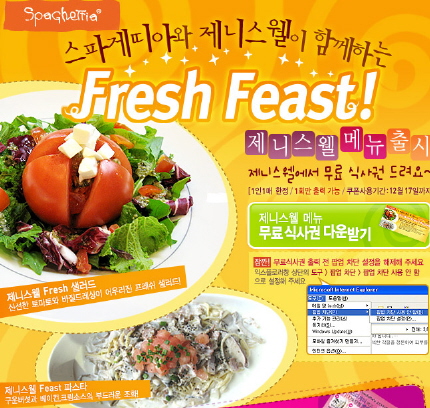 또한 스파게띠아 매장에서 받는 스크래치 쿠폰을 통해 제니스웰 크리스마스 세트, 스파게띠아 무료 식사권 등을 제공한다.