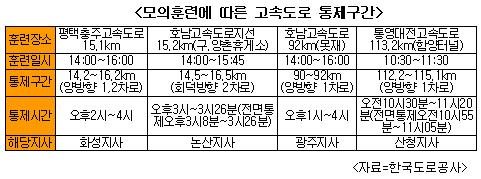 [프라임경제] 한국도로공사가 23일 오전 10시30분부터 호남고속도로 못재(92km)고개 등 4개 구간에서 겨울철 ‘폭설대비 유관기관 합동 모의훈련’을 실시하게 되어 교통을 통제(표 참고)한다고 22일 밝혔다.
