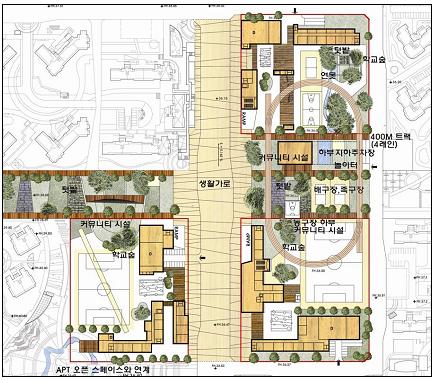 단지 조성단계부터 학교와 공원을 하나로 설계해 기능적, 생태적 열린설계를 통해 일체화된 방식으로 조성하겠다는 것이다.