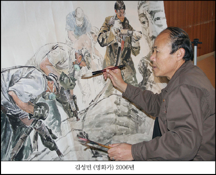 <사진설명> 20006년 10월 북경예술박람회 금상 수상 김성민(57세) 화백의 창작 모습