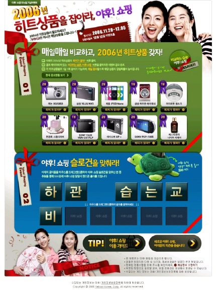 [프라임경제]야후!쇼핑(shopping.yahoo.co.kr)은 ‘2006년 히트상품을 잡아라!’ 기획전을 내달 5일까지 진행한다고 27일 밝혔다.