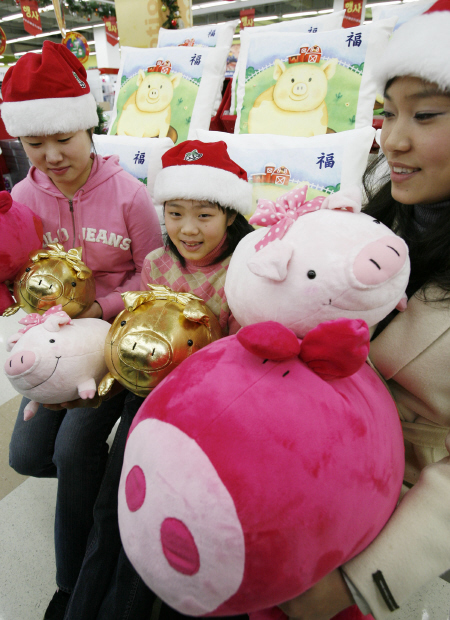 [사진뉴스]정해년을 앞두고 황금돼지가 그려진 방석등 판매