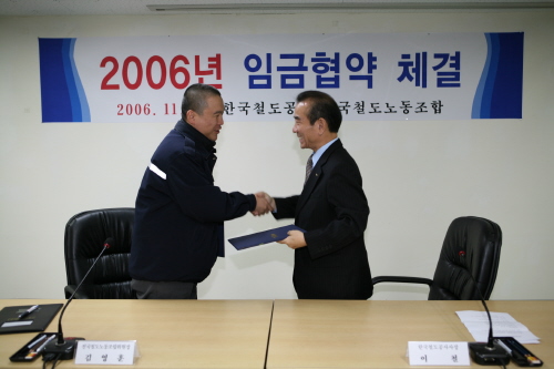 철도공사는 이날 노사간 임금교섭을 마무리하고 오후 1시30분 서울사옥에서 ‘2006년 임금협약 체결식’을 가졌다.