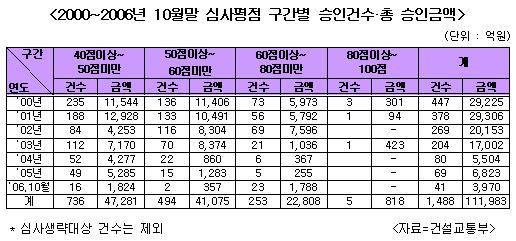 4조1075억원에 달했다. 80점 이상은 단 5건에 불과한 것으로 나타났다.