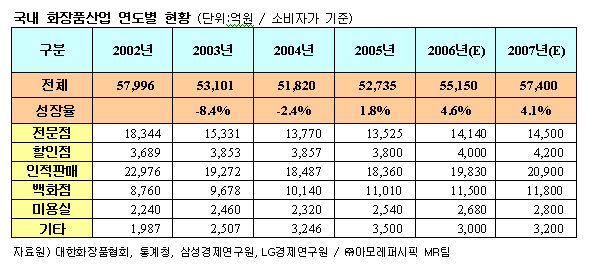 30일 업계가 분석한 2007년 화장품 산업 전망에 따르면
