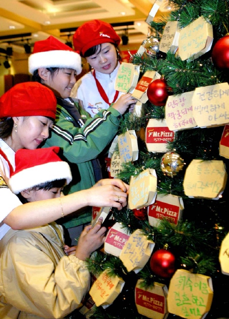 특히 미니피자박스로 트리에 장식도 하고 2007년의 꿈과 희망을 적어 ‘꿈의 나무’, ‘희망의 나무’에 다는 등 이색 이벤트 ( 사진)도 열었다.