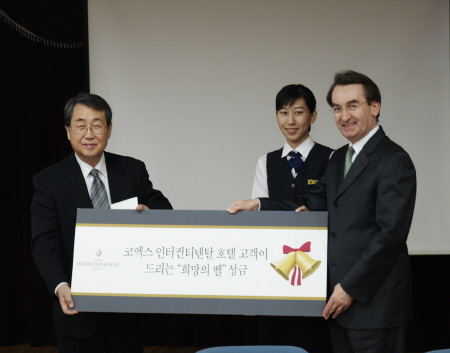 한편 코엑스 인터컨티넨탈 호텔은 지난 1일부터 22일까지 각 레스토랑 및 바에서 '희망의 벨'을 판매해 모금된 전액을 강남 사회 복지관에 기부 했다. (사진2)