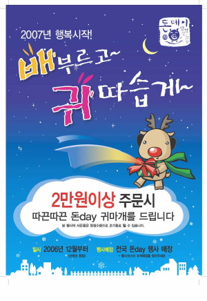 돈데이 권용남 총괄이사는 “어느 해 보다 많은 사랑을 주신 고객들에게 감사의 의미를 담아 풍성한 이벤트를 준비했다”며 “2007년에도 수준 높은 최고의 서비스를 제공, 돈데이만의 외식문화를 만들어 가겠다”고 소감을 밝혔다.