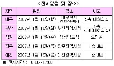 [프라임경제]건설교통부는 ‘2007 건설신기술 전국 순회전시회’를 1월15일부터 19일까지 5일간 대구를 시작으로 부산·창원·광주·대전 등에서 열린다고 14일 밝혔다.