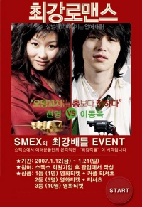 스멕스는 최강배틀 이벤트 경품으로 1등 1명에게는 영화티켓과 커플티셔츠를, 2등 5명에게는 영화티켓과 티셔츠, 3등 19명에게는 영화티켓을 선물할 예정이다.